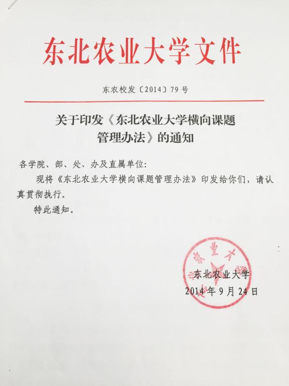 关于《东北农业大学横向课题管理办法》的通知