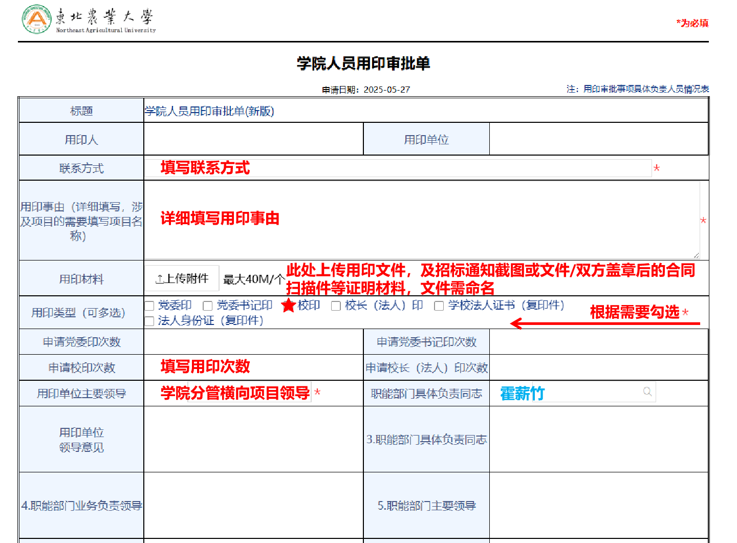 第六步:流程流转,看到用印单位、职能部门、分管校领导、校长审批通过后,流程节点到达“学校办公室”环节时,可到主楼校办盖校印。