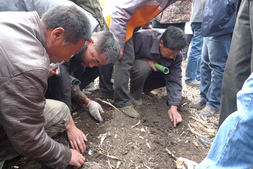 随后,四台播种机陆续开动,先后进行了现场实地示范。参会人员在播种机耕种后的地块进行了认真测量,对事先设定的自行调节变量如株距、种子深度、施肥量等均给予高度认可。一位正在测量株距的技术人员表示,如果使用这种播种机,不仅能做到精密播种、秸秆全量还田,还能培肥地力,对蓄水保墒、改善土壤环境、防止水、土、肥流失起到可靠的保障。