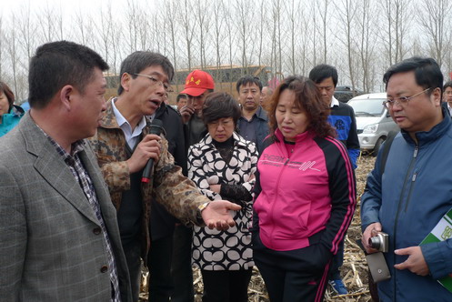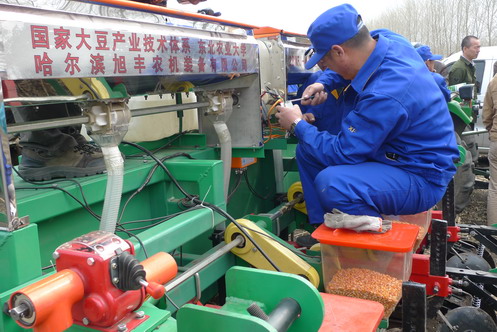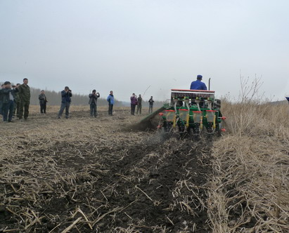 上午9点半,玉米茬地免耕覆秸播种技术现场培训会在望奎县东郊乡前水五村、后水五村举行。农业部农业机械化管理司处长王国占、黑龙江省农业机械化管理局局长郑联邦、黑龙江省农技推广站站长任晓东、黑龙江省农业机械化管理局副局长李宪义、国家大豆产业技术体系首席专家韩天富、哈尔滨市国资委副主任菊伟、哈尔滨工投集团副总经理张波、国家大豆产业技术体系东北区域重点任务技术负责人胡国华,我校工程学院院长、岗位专家陈海涛等参加现场培训会。望奎县县委书记顾百文、县长单伟红、副县长孙国文参加现场会。我校副校长郑秋鹛、新农村发展研究院执行院长吴永清、我校选派望奎县挂职副县长寇胜利及来自安徽、吉林、内蒙古、山东、黑龙江等10个大豆主产省农业机械化管理局和农业机械化技术推广站的相关负责人、国家大豆产业技术体系部分岗位专家和综合试验站负责人参加现场会。现场会由孙国文主持。