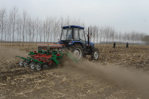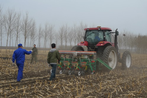 当前正值我省全面推进春耕生产的关键时节,很多种植户为了处理秸秆采用焚烧的办法,不仅污染环境而且存在较大的火灾隐患。那么,有没有一种机械能彻底改变这种落后的传统耕作方式呢?我校工程学院院长、农业部岗位专家陈海涛技术团队自主研发的玉米原茬地免耕覆秸精量播种机系列机型完全能够满足这些需求。这一系列机播种型无需焚烧秸秆,进地之后可以一次完成侧深施肥、精量播种、覆土镇压、喷施封闭除草剂和秸秆均匀覆盖,做到了免耕覆秸、精量播种一次完成。而且,为了满足普通农户和大面积地块及不同作物的需求,该团队推出了四种型号机型。4月19日上午,4台茬地免耕覆秸播种机样机在望奎县一下田亮相就备受关注。