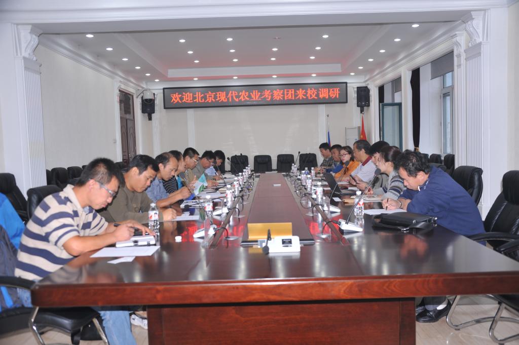 郑秋鹛代表学校对北京现代农业考察团一行来校调研表示热烈欢迎,并从校县共建、校企合作、校垦合作、选派科技副县长、选派科技特派员、校企共建研发中心等方面详细介绍了我校开展社会服务、促进科技成果转化等方面的途径和方式。她最后表示,希望通过此次交流,认真学习中国农业大学在基地建设、成果转化、队伍建设、资产经营等方面的做法,促进学校校内基地建设与管理、资产经营和科技成果转化。随后,吴永清、徐金星、朱志猛、徐文龙分别利用多媒体介绍了新农村发展研究院、向阳基地、阿城基地及香坊基地的建设、管理及运行情况。