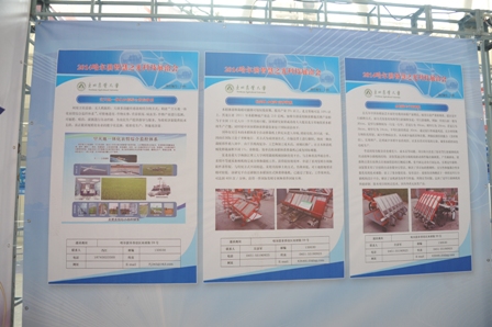 我校展区位于会展中心A馆哈尔滨市科技局“智慧城市”展区内,占地面积40平方米。经我校新农村发展研究院积极与哈尔滨市科技局、哈尔滨市政府技术市场管理办公室、广告设计公司等多家单位沟通,认真与工程学院、电气与信息学院等单位协调,确定了以“寒地智慧农业”为主题,以实物展出为特点的参展方式,重点展出了水稻宽窄行插秧机、水稻钵苗移栽机、智能无人机监控系统等先进科技成果。