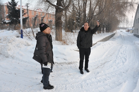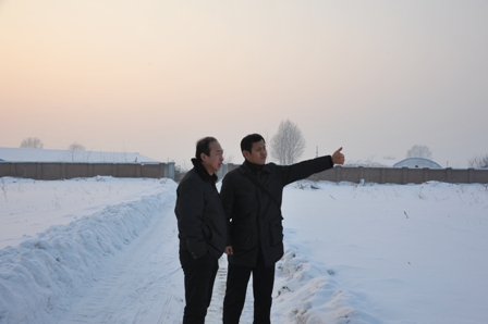 2014年1月3日,在新农村发展研究院副院长朱志猛、阿城基地畜牧师赵洪波陪同下,动物科技学院党委书记高越山和教师毕重朋到阿城基地调研。