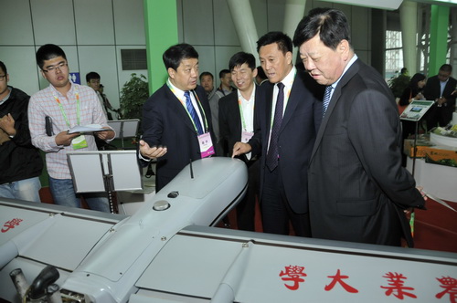 研发无人机的是我校电气与信息学院团队。参与研发的冯江告诉记者,这台飞机真正实现了农用作业的无人驾驶,只要一键即可启动,自主降落。加满油一次可飞行4小时,平均时速100公里/小时,最高速度可达到180公里/小时,实现大范围、远距离监测。