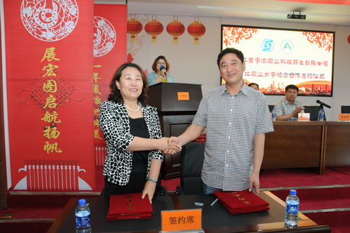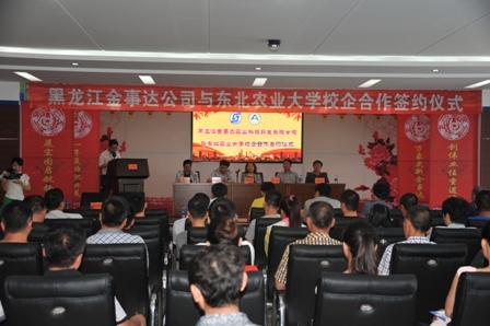 6月14日,我校与黑龙江省金事达农业科技开发有限公司校企合作签约仪式在绥化举行。我校副校长郑秋鹛,新农村发展研究院执行副院长孙占海,资源与环境学院院长索志林,绥化市北林区人民政府副区长刘宝国,黑龙江省金事达农业科技开发有限公司总经理范友、副总经理刘文杰及公司全体员工参加签约仪式。
