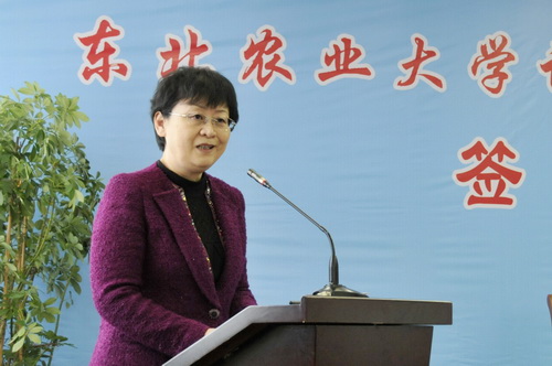 徐梅代表我校致辞,她表示,长期以来,香坊区委、区政府对学校各项事业的发展给予了大力支持和帮助,校区双方结下了深厚友谊。此次,香坊区又一次鼎力支持学校将新农村发展研究院试验示范基地落户,并将该项目纳入招商引资重点项目给予全力支持,充分体现了香坊区对东北农业大学的高度重视。此次签约仪式的举行,标志着校、区新一轮战略合作的正式启动。“东北农业大学试验示范基地建设项目”是学校深入推进“新农村发展研究院”建设和“2011计划”的迫切需要,东北农业大学将以此为契机,进一步强化与香坊区在各领域的深层次合作,不遗余力地为“新香坊”“南拓、东扩、中兴”战略规划的实施及香坊区域农业结构调整和示范做出贡献。