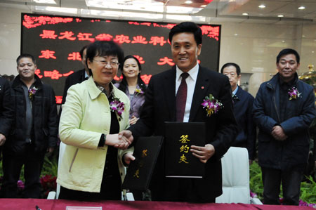 12月16日上午,我校与黑龙江省农业科学院签署了校院合作战略协议,旨在加强资源共享、推动协同创新、协同服务,深化高等教育办学模式、办学机制改革,进一步提高人才培养质量、科研水平和社会服务能力,促进开放办学、开放办院、开放办园,集聚人才资源、教育资源、科技资源,打造国家农业区域科技创新与教育平台,建设新型农科教紧密结合的科教创新服务体系,推动黑龙江省现代化大农业建设和社会主义新农村发展。