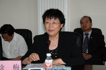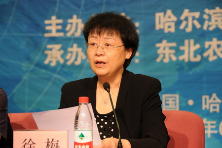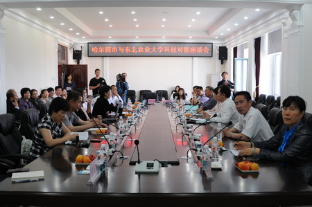 徐梅在座谈会上讲话。她说,此次活动对科技成果的介绍和转化推进工作系统、全面,具有战略意义。良好的开始是成功的一半,今天,各区县对我校科技成果转化情况有了初步了解,今后,我们会通过各种方式与各区县进一步对接,继续把服务农业经济发展作为义不容辞的责任,通过“万名大学生进万村”、选派科技联络员等一系列活动深入开展科技服务工作,为区县经济发展提供服务,为哈尔滨的经济社会发展提供服务。