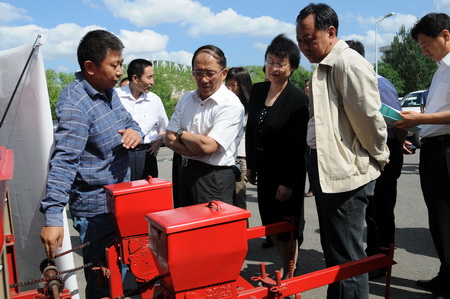 开幕式后,程幼东在徐梅、郑秋鹛的陪同下参观了展洽会科技成果展区、农业机械展区、重点农业企业展区、金融机构洽谈区和企业实物展区。在科技成果展区程幼东详细询问了生物农药,玉米、番茄等良种繁育,农作物施肥与植保等技术成果;在农业机械展区,我校专家向省市领导详细讲解了“水稻宽窄行插秧机”等农机具的研发推广应用情况;在金融机构洽谈区,我校展示了金融机构针对农业科技成果落地转化和微小企业的支持政策;在企业实物展区,程幼东参观了我校大学科技园教师创办企业实物展品,并询问了产品研发及市场化情况。