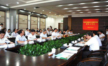 会上,中国农大党委书记瞿振元,浙江大学副校长吴朝辉,西北农林科技大学党委书记张光强,东北农业大学党委书记、校长徐梅,以及南京农大、华中农大、四川农大、沈阳农大、安徽农大、湖南农大的领导依次作了发言。主要围绕落实中央一号文件精神和全国科技创新大会精神,如何建设“新农村发展研究院”,如何建立以大学为依托的新型农业科技服务体系,如何加强协同创新、协同服务,构建“现代农业科技创新体系”,提高高等学校人才培养质量,深化大学教育教学改革、改进教师绩效评价机制等,同时各高校汇报了“新农村发展研究院”的建设情况。