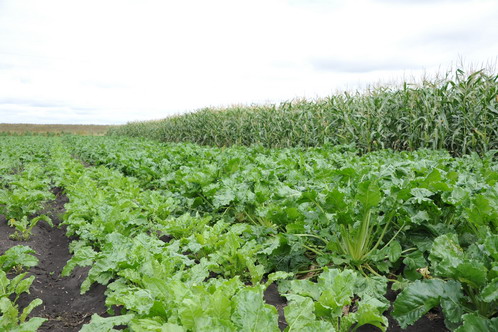我校曲文章教授的《纸筒甜菜双高技术(左边对照、右边处理)》项目