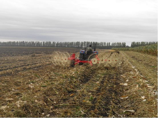 50马力拖拉机拖带伊诺罗斯CADDY—8型搂草机搂草