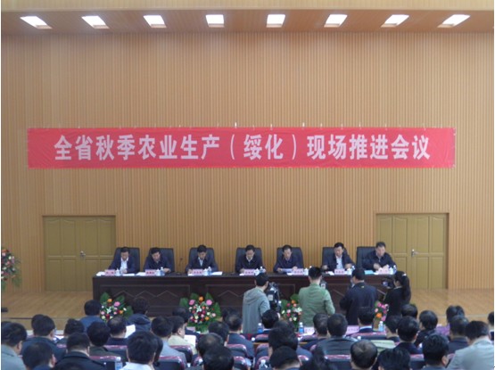 上午10:30时,在庆安县新三中一楼会议室,全省秋季农业生产(绥化)现场推进会议正式召开,副省长吕维峰,省政府副秘书长金济滨,省农委主任王忠林,绥化市委副书记、绥化市市长王金会,省发改委副主任戚国忠,省财政厅副厅长于飞,省水利厅副厅长王铁在主席台就坐,省直代表、市县代表以及海伦市、绥棱县、庆安县农业生产一线人员共500人参加会议。
