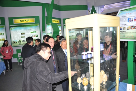 教育部作为杨凌农高会的主办单位之一,为更好地推动大学科技服务新模式,广泛开展农业合作与交流,促进高等农业院校科技成果转化和新农村建设,组织了全国首批新农村发展研究院试点高校及其它涉农重点大学,共15所高校组成了教育部展团,参加了博览会。在此次博览会上,我校新农村发展研究院共推介农作物新品种31个、新技术15项,展出实物产品28项,发放科技书籍200多册、科技成果宣传彩页1000多份。
