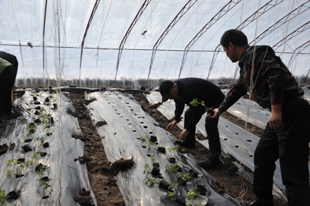 李景富不仅提醒大家苗高的要斜栽,还再三强调要严格控制大棚内的温度和湿度,加大通风,避免番茄幼苗“秃秧”。润琦集团董事长王琦一边栽苗一边兴奋地告诉记者说,我们大庆就是缺少果菜,这次李老师送来了好品种我们一定好好种,争取明年大面积种植,解决冬季没有果菜的问题。李景富教授表示,林甸有7000栋大棚,此次送番茄苗希望能起到试验示范的作用,争取明年有更多农户引进种植,带动农民增收。