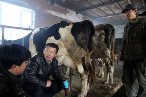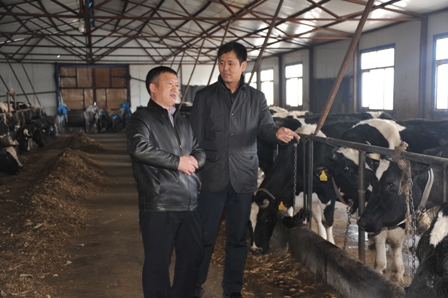 随后,我校专家一行来到新农村发展研究院综合基地奶牛养殖基地—林甸县建国农场,岳奎忠研究员详细查看了解了奶牛的饲养、产奶和疾病防治情况并现场指导。农场负责人王建国告诉记者,“岳教授去年来我们这里20多回,不但治好了奶牛的蹄病,还让奶牛乳房炎的发病率降了8成。300多头治好了病的奶牛,每天能多挤700多公斤奶。”看到有一处牛舍被大雪压塌了,岳奎忠反复叮嘱他再建时一定要注意跨度,不能再按从前的结构复建,还必须选择优质的钢架。王建国激动地对岳老师说:“你上次来就说过这个事,我没当回事,这回可得按你说的办了。”