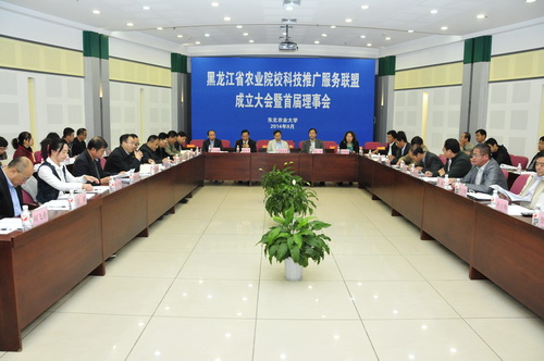 9月29日上午,由我校作为理事长单位、倡议并牵头组织的“黑龙江省农业院校科技推广服务联盟”成立大会暨首届理事会在我校召开。黑龙江省科技厅副厅长张长斌、农村处处长唐晓明,省教育厅科教处处长王明福,省农委科教处处长魏丽荣、省农业技术推广站总农艺师张相英出席会议,东北林业大学校长杨传平、黑龙江八一农垦大学副校长王金满及其他8个农职高专院校负责人参加了成立大会。我校校长包军、副校长郑秋鹛,科技处、园区与产业办公室、新农村发展研究院等有关部门负责人及相关学院负责社会服务工作的院领导参加大会。会议由郑秋鹛主持。