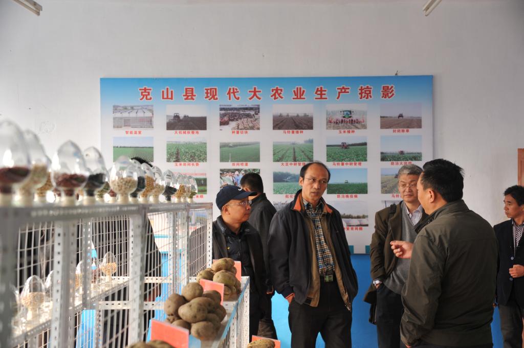 我校一行首先考察了克山县中等职业学校,深入到各实训教室查看了教学、实验、标本等条件,现场听取了校长吕宏彦对整个学校基本情况的介绍;在仁发农机专业合作社,与理事长李凤玉就合作社土地流转、日常运行、效益分红、人员管理等情况进行了交流;在黑龙江立涛马铃薯专业合作社,查看了日光温室、光照培养室、配药室、种薯仓储库等。
