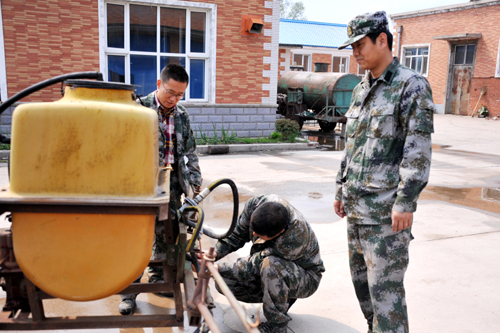 5月3日,新农村发展研究院副院长朱志猛、高级畜牧师赵洪波组织工作人员对喷药机等农业机械设备进行配药前检修,保证相关课题试验示范农田播种后苗前封闭除草工作顺利开展。