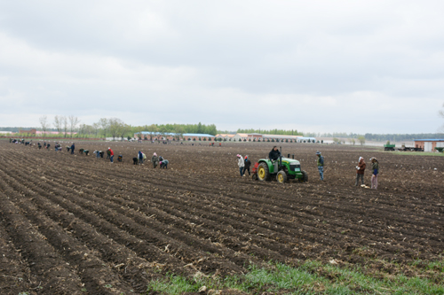 4月27日,农学院王振华教授、张林副教授、董玲副研究员带领玉米课题组硕博学生,深入阿城基地开展黑龙江省早熟优良玉米新品种选育工作,基地工作人员到现场安排播种、施肥工作,协助完成春播。