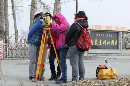 4月13—24日,我校土地资源管理专业2012级173名学生,在阿城基地进行3S综合实习和综合地籍实习。本次实习共分12个区,24个小组,以基地为核心区,覆盖周边7km2土地,进行遥感土地利用调绘、地形地籍测量(动态RTK和全站仪)和水准仪四等水准测量,获取实习区域土地利用现状、地形地貌、居民点等空间数据,为后续内业实习奠定基础。基地工作人员认真做好学生饮食、住宿、安保等后勤保障工作,保证学生圆满完成实习任务。