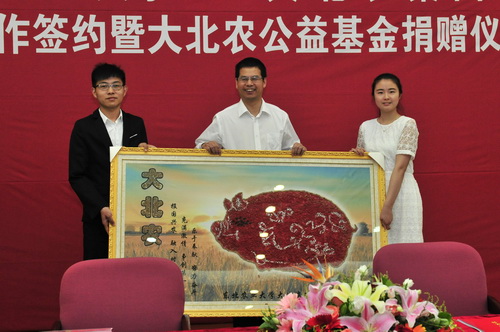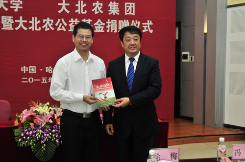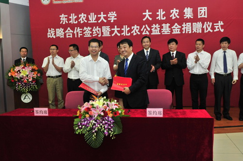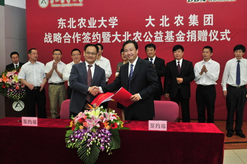 会上,与会人员观看了大北农集团和东北农业大学宣传片;宋维平、包军分别代表校企双方签署了战略合作协议,邵根伙、冯晓分别代表大北农公益基金、基金会签署捐赠协议。根据协议,大北农集团将与我校在人才培养、科学研究、科技成果产业化等方面展开全面合作,并决定从2015年起,每年向东北农业大学捐赠200万元,连续捐赠6年,总计1200万元。