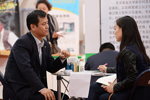 据现场负责人、我校新农村发展研究院副院长朱志猛介绍,我校高度重视此次会议,3月初开始展会筹备工作,并面向学校征集科技成果。由于我校参展的科技成果在产业内具有较强领先性和转化发展前景,吸引了很多行业专家和企业代表前来咨询洽谈。立陶宛驻华大使馆官员Mindaugas先生在参观时表达了将协助立陶宛农业大学与我校开展合作交流的意向。农垦八五二农场就寒区蓄禽粪便与作物秸秆低温快速发酵剂技术表示了合作意向。部分企业表示希望参与我校毕业生招聘活动,吸纳我校毕业生到企业就业。截至目前,我校展位共接待参会代表咨询、洽谈百余人次。