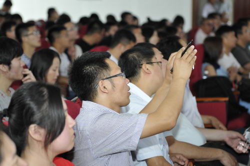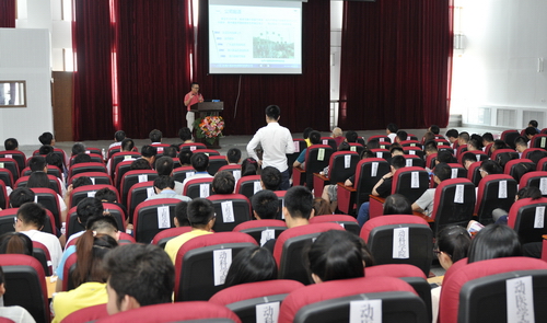 宣讲会上,李铁明以一部短片开始了《建设美丽农庄 实现创业梦想》的报告,与现场师生分享了湖南佳和农牧有限公司的发展历程。蓝天围绕广东华农温氏畜牧股份有限公司的发展作了题为《温氏的现状与未来》的报告。黎小兵从“北大博士卖猪肉”的创业起点谈起,用幽默风趣的语言介绍了广东壹号食品股份有限公司的经验,并鼓励学生在校期间多做应用性研究的尝试,做有市场意识的农业科技人才。黄定寿在宣讲中介绍了广西扬翔食品有限公司先进的设施、科学的管理经验、生态生猪饲养模式和扶贫成果,并诚邀我校毕业生到企业就业。余平详细介绍了猪场设计趋势与余氏猪场的市场优势和发展战略。傅衍在《动物遗传育种的新技术新进展》的报告中介绍了美国生猪饲养的生产模式和生猪育种的基本问题。廖峰的宣讲报告题为《迎接农牧业伟大时代的到来》,报告展示了北京伟嘉集团与我校长期合作取得的成果,鼓励广大学子要有投身农牧业的梦想并敢于追梦。7位企业家的精彩宣讲赢得了现场师生的热烈掌声。