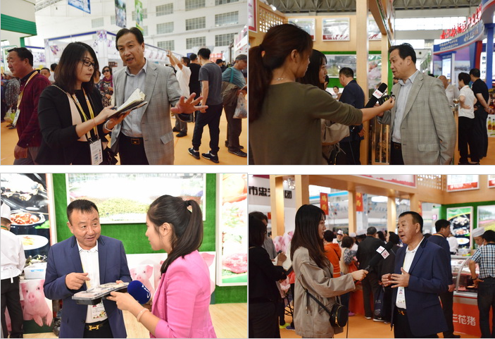 新闻媒体在展会现场对“东农三花猪”进行宣传报道