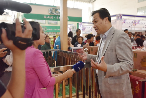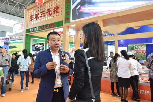 黑龙江省东农三花猪畜牧食品有限责任公司董事长万云超接受记者采访