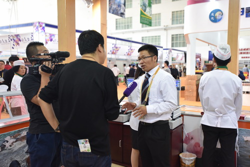步入展区,最吸引人的就是四只毛色各异、憨态可掬的“三花猪”宝宝。饲养员不时添加饲料和饮用纯净水,展示福利型养殖模式。展区还展示了我校与秋林云宴农牧发展有限公司共同合作的成果“三花猪”优质和极品冷鲜肉及熟食制品,众多媒体不时来到展区采访报道,前来参观和购买产品的消费者络绎不绝。