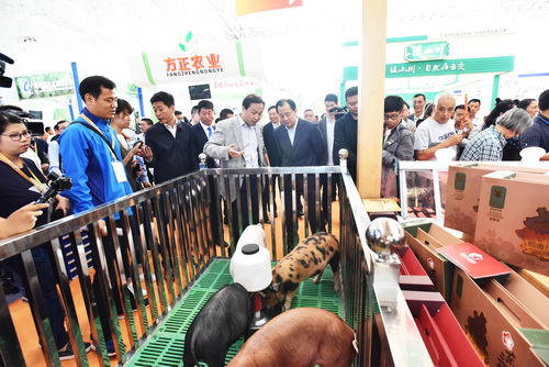 上午10点左右,省长陆昊来到“东农三花猪”展区。陆昊观看了“三花猪”健康养殖模式,详细了解了“三花猪”的特点、成果转化等情况。我校校长包军介绍了“三花猪”福利养殖特色、耐寒抗病特点、科研项目最新进展和校企合作基本情况。为推动“三花猪”项目落地成果转化,2014年10月,我校与黑龙江省秋林云宴农牧发展有限公司共同组建了黑龙江省东农三花猪畜牧食品有限责任公司,共同研发、繁育、生产“东农三花猪”。