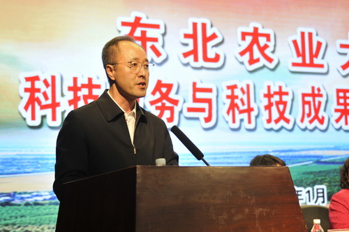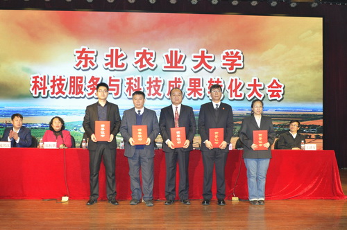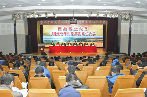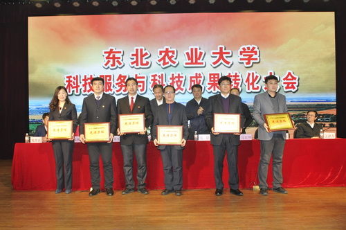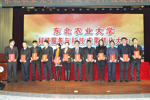 为总结回顾“十二五”以来,学校在科技服务、成果转化方面取得的成绩,进一步部署落实去年5月陆昊省长莅临我校调研科技成果转化指示精神,推进学校“社会服务支撑工程”、社会服务“十三五”专项规划,强化创新创业驱动能力建设方案的实施,实现科技成果产业化。2017年1月6日上午,东北农业大学科技服务与科技成果转化工作总结表彰大会在图书馆一楼报告厅举行。全体在校校领导,受表彰人员,全校正、副处级干部,各级学科带头人及学科团队带头人,各级重点实验室、校企研发中心负责人,各学院系书记、主任及科研学科管理人员,科技处、新农村发展研究院及国家大学科技园与产业办公室全体人员及党政机关正科级干部参加了会议。会议由副校长郑秋鹛主持。