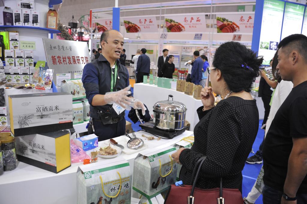 本次绿博会上,我校的参展活动可谓是精彩纷呈。我校展板及展位前人来人往,络绎不绝,体验区内我校参展的绿色食品引来众多参观者纷纷驻足品尝,并对所品尝的食品赞不绝口。至24日,我校“三花猪”产品、无腥味大豆系列产品展位存货均出现了供不应求的可喜局面。许多涉农企业、合作社、种养大户、普通农民及投资商、银行和各级政府人员对我校展出的三花猪、鸭稻米、东农豆252、无腥味大豆系列产品、林甸鸡等成果产生了浓厚兴趣,并给予了高度评价。