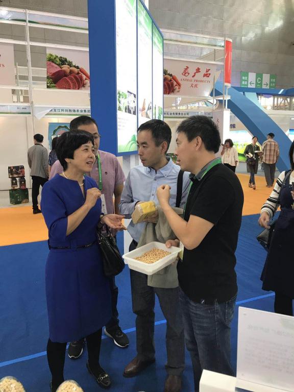 尤其值得一提的是,2017年9月24日下午,省长陆昊来到了绿博会,陈庆山教授向陆省长介绍了东农豆的发展情况,并表示在省长的批示和鼓励下,成立了黑龙江普兰农业发展有限公司,陆省长听了汇报很高兴,鼓励好好干,会一直给以关注和支持。省农委王金会主任也给予了肯定,并建议将今年的大面积生产和测产情况汇报到农委。省畜牧兽医局局长祖伟也对大豆产业进一步的发展表示关注和支持。