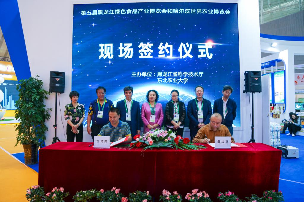 更可喜的是,绿博会开幕当天,我校就在省科技厅领导及我校郑秋鹛副校长等领导及专家的见证下喜签4个大订单:我校作为技术支撑的五常川北道水稻种植农民专业合作社与深圳米世家粮业有限公司、辽宁翠京元生态环境发展有限公司、哈尔滨松雷集团分别签订了350吨、200吨、110吨的购货合同;黑龙江普兰种业有限公司与黑龙江省昂托尔农业科技发展有限公司签订“东农豆252”6000亩种植合作项目订单。这是我校一直以来奉行注重展出实效的结果。