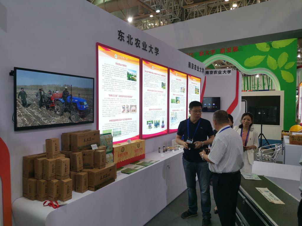 本次交易会,我校现场共展示了“东农三花猪高端冷鲜肉系列产品开发及产业化”、“优质高产大豆东农豆252推广与产业化”、“蓝靛果种质资源的研究及开发利用”、“农业生产要素可视化大数据平台及全产业链服务系统”、“益生菌型土壤调理剂”等展板项目9项,展示相关成果实物60余件,网上推介成果50项。