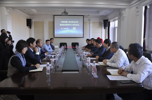 在我校深入开展“不忘初心、牢记使命”主题教育,深入学习贯彻习近平总书记给全国涉农高校书记校长和专家代表重要回信和党的十九届四中全会精神之际,11月8日上午,我校在主楼610会议室举行东北农业大学天邦生物猪病监测研发中心签约与揭牌仪式。天邦生物总裁王峰、人力资源总监胡淑梅、质量总监刘步楼、市场与技术服务部总经理刘小兵、渠道客户部总经理尚宇兵、集团客户部经理张成军,哈尔滨五洲动物保健品有限公司总经理胡秋成,我校副校长邹德堂、科技处处长孙占峰、动物医学学院党委书记许海峰、李艳华教授、李金龙教授等参加了签约仪式。签约仪式由新农村发展研究院副院长宋珲主持。