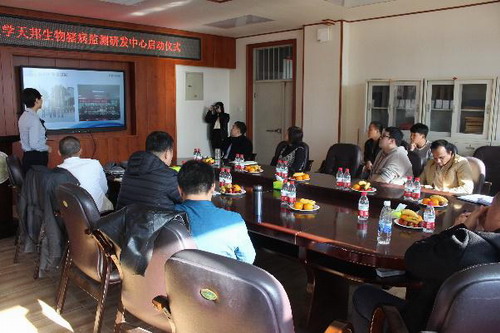王峰介绍了天邦股份生物技术部的基本情况以及企业未来的战略部署,希望研发中心能作为连接校企之间的纽带,加深双方的资源整合与优势互补,共同促进科技成果转化,为企业输送人才,注入新的血液,在深入合作中取得新的成果。