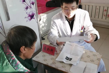 对于因身体原因不能前来看病的贫困户,义诊医生亲自带着医疗设备来到患者的家中,为患者进行详细诊查,赠送对症药品并普及用药常识,得到了村民的称赞。