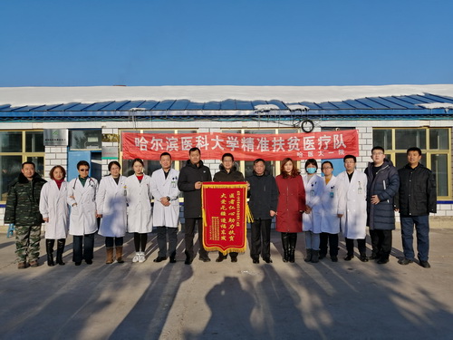 12月19日,应东北农业大学驻村工作队的邀请,由哈尔滨医科大学附属第一医院8个科室的医生协同甘南县人民医院部分医生共同组成精准扶贫医疗义诊服务队赴东发村义诊,并为东发村村民赠送药品。哈尔滨医科大学党委副书记贺景平、党委宣传部副部长乔蕤琳,哈尔滨医科大学附属第一医院组织部部长江立,甘南县人民医院院长范东江、副院长赵志军等参加义诊活动。