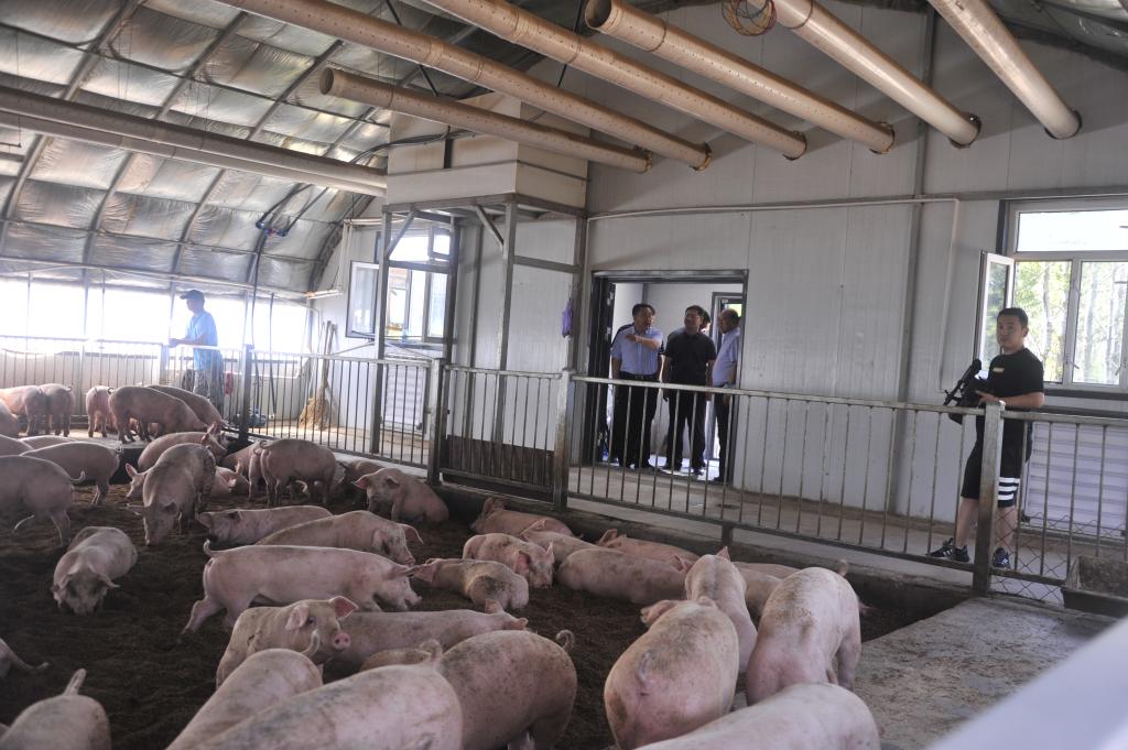 邹德堂对基地建设及运行情况进行了现场调研,对依托我校福利养殖理念建设的冬季无需取暖设备的零污染、零排放母猪及育肥猪猪舍和在建的福利养殖猪舍进行了现场踏查。