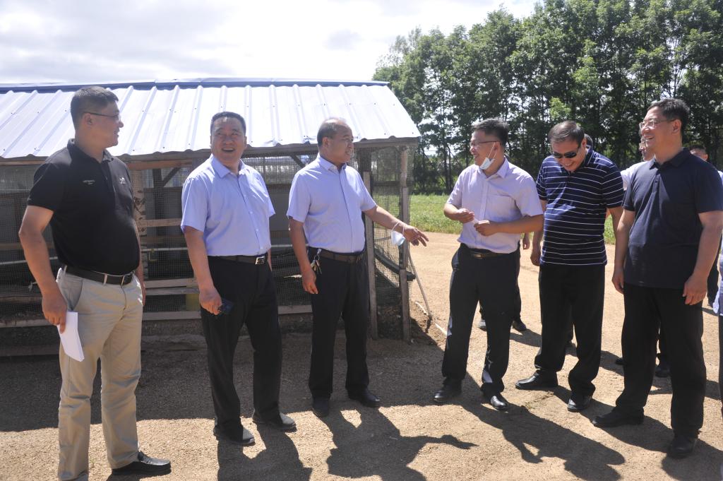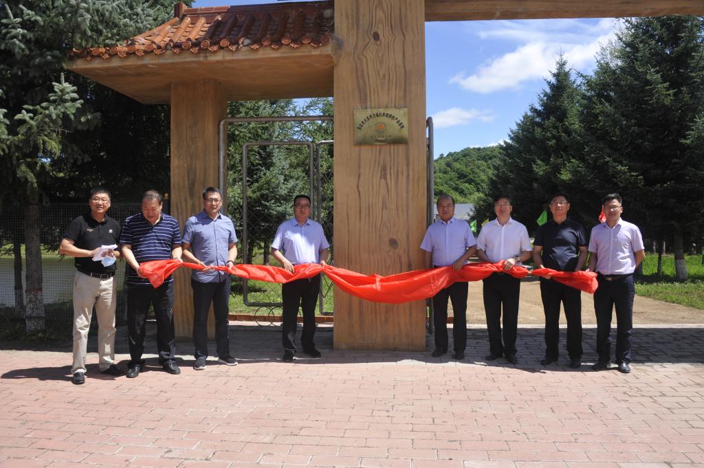 校企双方在养殖基地举行了揭牌仪式。张晓华、刘志明、任立权、邹德堂、徐光君等共同为“东北农大亚布力福利养殖特色产业基地”揭牌。