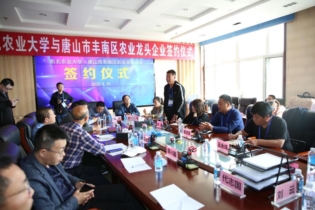 佟赞利在讲话中感谢东北农业大学对丰南区的支持和帮助,并就全区现代农业快速发展和下一步合作提出了三点希望:一是继续深入开展镇村干部、新型农业经营主体、新型职业农民赴校培育;二是继续深化区校务实合作,签署农业龙头企业合作协议,强化科技支撑,发挥学科优势,为龙头企业提供咨询服务,为企业发展注入活力;三是丰南区将一如既往地为合作创造良好的保障条件,希望把重点农业龙头企业做为学校科研成果转化基地,并为专家提供更好的科研条件、试验条件,推动合作结出更加丰硕的果实。