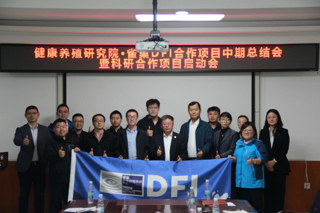 为了进一步加强东北农业大学动物科学技术学院(健康养殖研究院)与雀巢奶牛养殖培训中心(DFI)的合作关系,总结上一阶段合作的宝贵经验,探讨下一步合作,9月29日下午,健康养殖研究院组织召开了健康养殖研究院与雀巢DFI合作项目中期总结会暨科研合作项目启动会。东北农业大学新农村发展研究院院长朱志猛、动物科学技术学院 (健康养殖研究院)院长刘忠华、双城雀巢奶牛养殖培训中心总经理张振东、双城雀巢奶牛养殖培训中心业务发展经理王兆年 、双城雀巢奶牛养殖培训中心谷物中心经理刘宏亮、双城雀巢奶牛养殖培训中心培训经理毕琳琳、以及动物科学技术学院、动物医学学院、农学院、资源与环境学院的领导和教师代表参加了此次会议。会议由健康养殖研究院执行副院长殷志明主持。