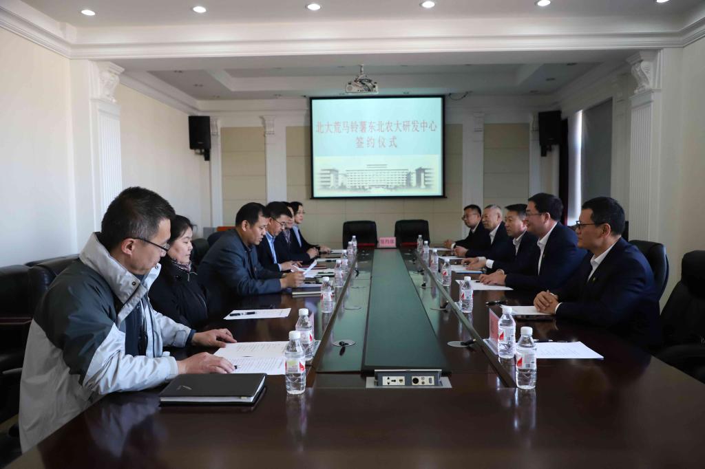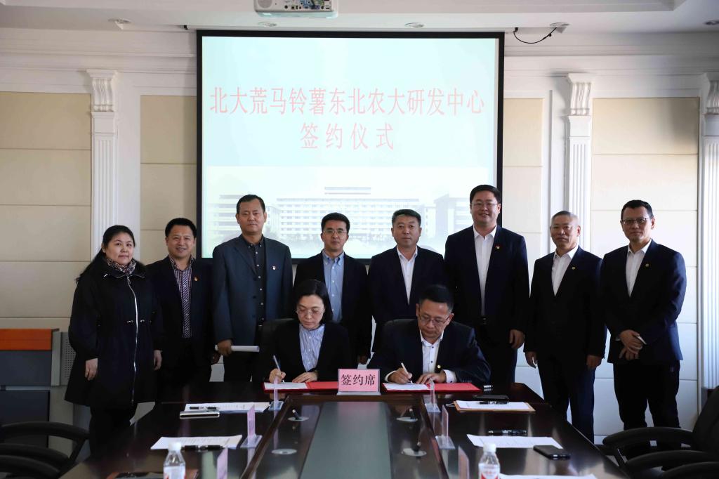 张丽莉和马力分别代表校企双方签订了《北大荒马铃薯东北农大研发中心》协议书。