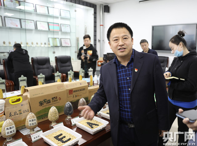 陈庆山院长正在介绍不同种类的大豆。石启立 摄