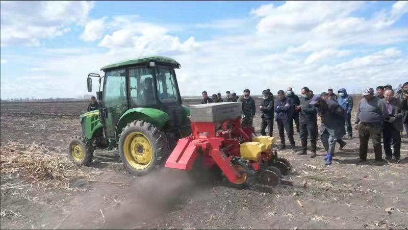 按照省委有关工作要求,结合党史学习教育“我为群众办实事”活动,4月28日,新农村发展研究院与驻村工作队邀请国家大豆产业技术体系机械岗位科学家、我校工程学院教授陈海涛科研团队来到甘南县东阳镇东发村举办“原茬地免耕覆秸精量播种机械化技术现场示范会”暨“农民田间课堂”。新农村发展研究院院长朱志猛,甘南县驻村办主任张友,农业农村局副局长宋树合,农业农村综合技术推广中心主任王占宇,东阳镇纪检书记杨久灵及甘南县各乡村农民合作社、种粮大户、致富带头人代表等100余人观摩了示范现场会。东发村第一书记、我校驻村工作队队长崔伟涛主持现场会。