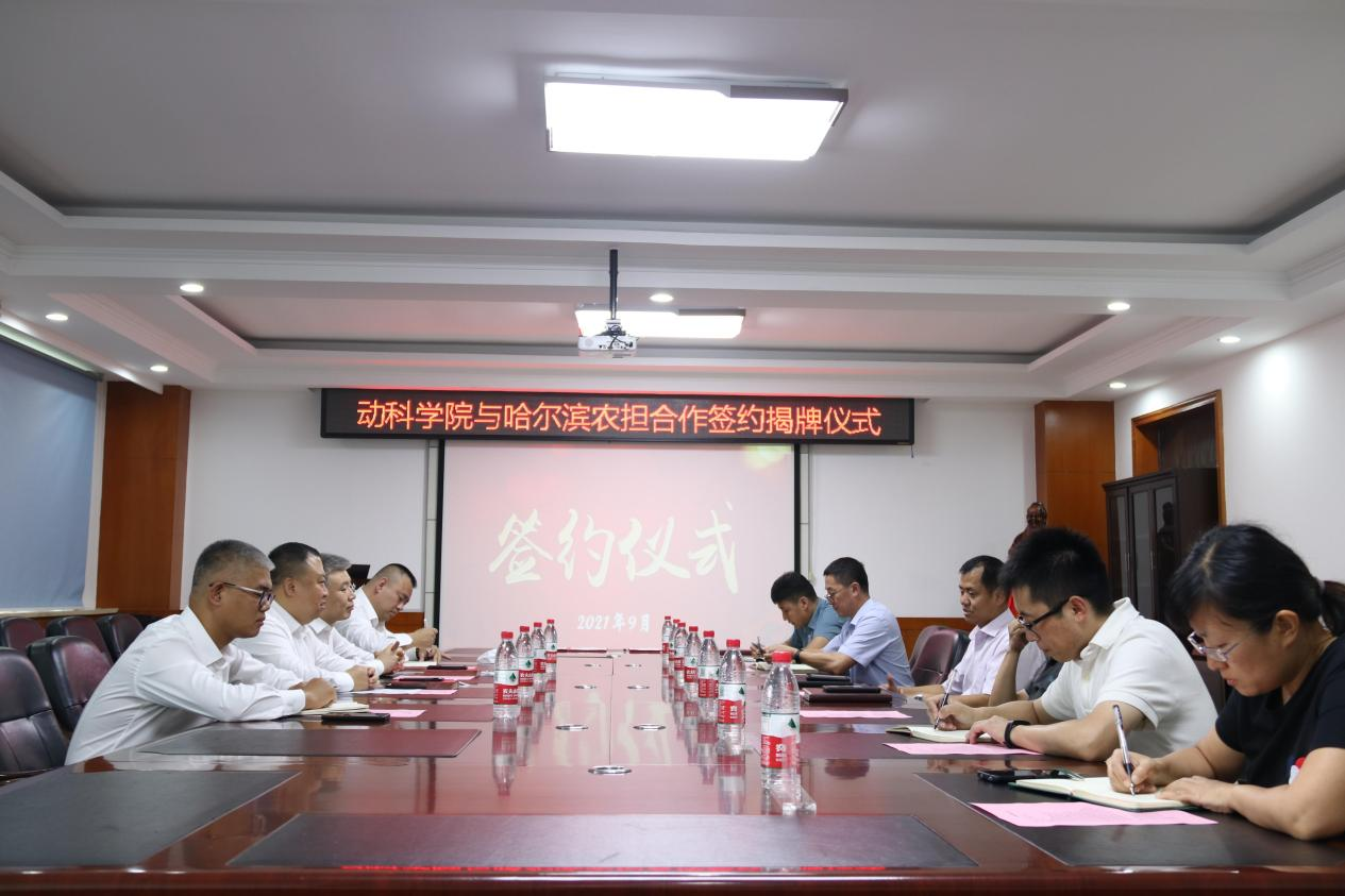 9月2日下午,我校动物科学技术学院与黑龙江农业融资担保有限责任公司哈尔滨分公司举行合作签约揭牌仪式。黑龙江省农业融资担保有限责任公司哈尔滨分公司总经理李伟,副总经理崔景春,担保业务二部总经理严斗虎,综合部主任苏悦,东北农业大学新农村发展研究院院长朱志猛,动物科学技术学院党委书记徐光君,院长刘忠华,副院长姚玉昌、马海鹍、辛杭书,经济管理学院副院长刘畅,健康养殖研究院执行副院长殷志明出席签约揭牌仪式,签约揭牌仪式由殷志明主持。